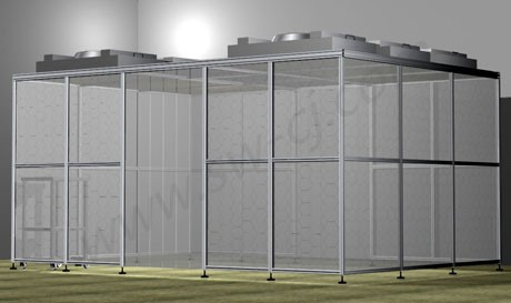 潔凈棚是由工業(yè)鋁型材(或者不銹鋼方通)搭建的框架結(jié)構(gòu),在頂部安裝FFU空氣凈化過濾單元,將潔凈空氣通過高效過濾器過濾后送入潔凈棚內(nèi),所以潔凈棚結(jié)構(gòu)包括一下幾個方面: