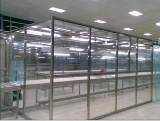潔凈棚(潔凈棚|無(wú)塵棚)是一種簡(jiǎn)單的潔凈棚,可以迅速提高地區(qū)潔凈度的設(shè)備。工業(yè)鋁材(或不銹鋼方通、鐵方通涂裝)作為框架,采用全布風(fēng)扇過濾單元FFU送風(fēng),周圍采用防靜電垂簾(或鋼化玻璃),內(nèi)部?jī)艋竭_(dá)到100級(jí),潔凈棚低成本、方便快捷、靈活組裝,廣泛應(yīng)用于光電、電子生產(chǎn)線作業(yè)、實(shí)驗(yàn)室、組裝區(qū)域等局部高清潔度。